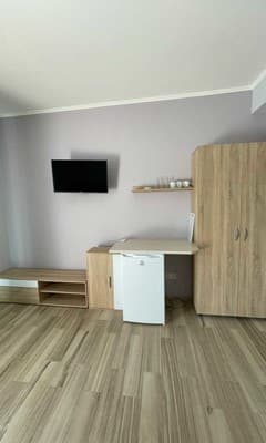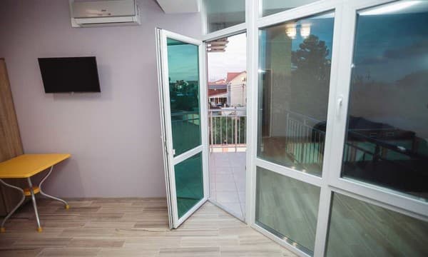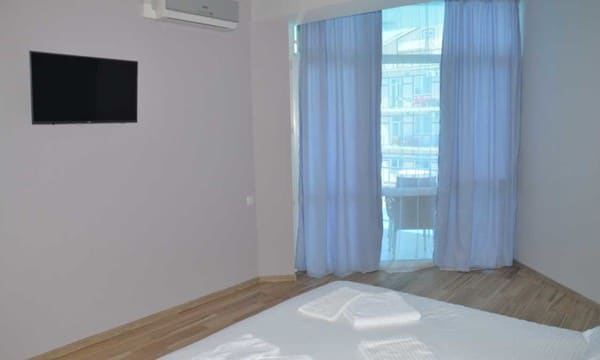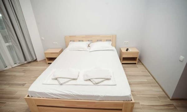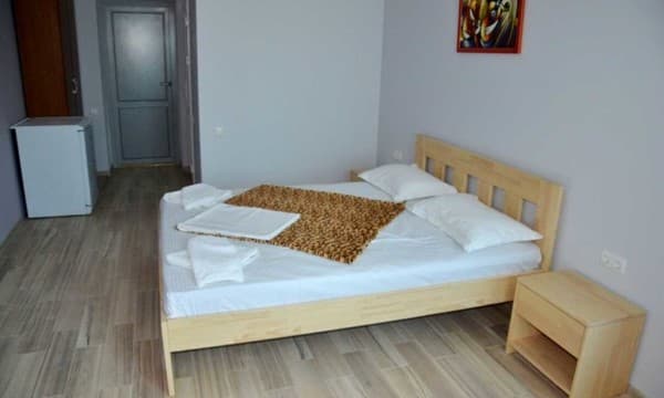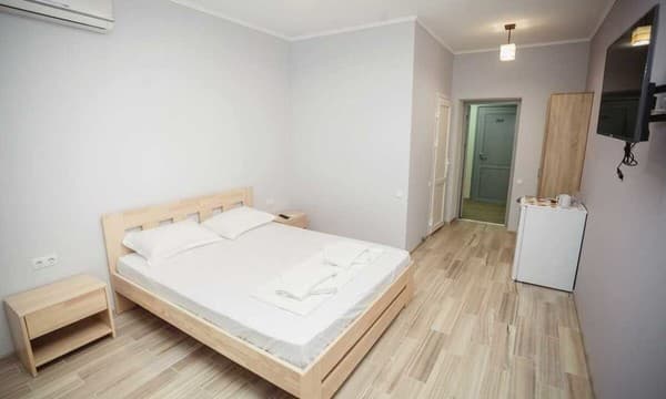 Апартаменты можно найти в Затоке, в Лиманском районе, в радиусе 100 метров от моря. База имеет свой бассейн, беседки и маленький фонтан. В апартаментах есть постоянная подача горячей и холодной воды. Домики оснащены необходимой техникой, такой как: телевизор, холодильник, кондиционер, а также мебелью для пребывания. Комната оборудована отдельным санузлом и террасой. На базе имеются парковка с охраной (25 грн в сутки) и игровая зона. Посетителям предлагается круглосуточный доступ Wi-Fi. В ваши услуги входит шезлонг, теннисный стол, мангал, камера хранения. В буфете можно сделать заказ питания. Апартаменты отдалены от станции Каролино-Бугаз на 650 м. Оформить регистрацию можно с 14:00, отъезд – до 11:00 часов.