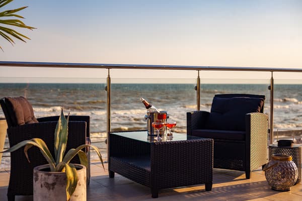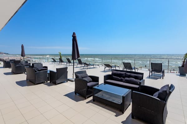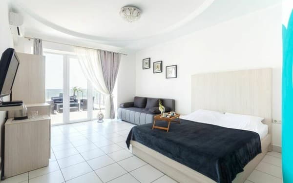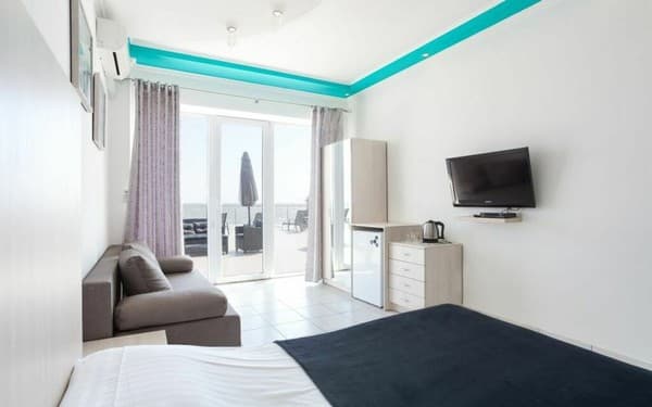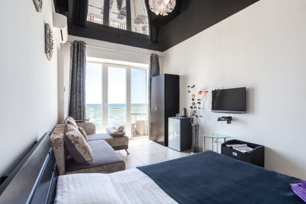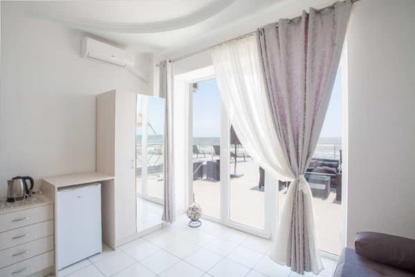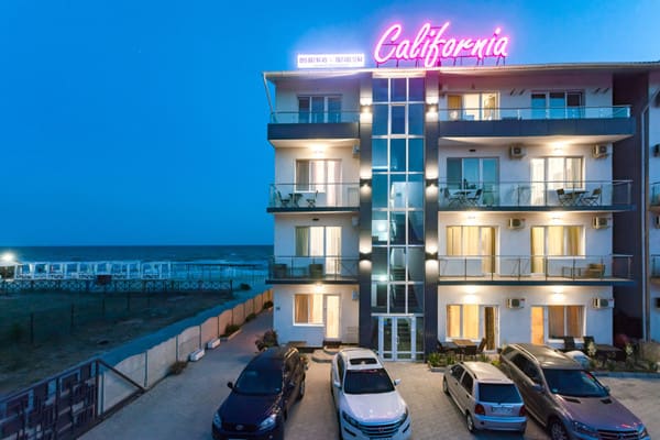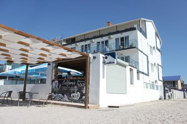 Отель "Калифорния" очень удобно расположен, практически в самом центре курортного поселка Коблево, всего в 25 метрах от моря. Сама гостиница ¬¬– это современное здание, где к услугам постояльцев предоставляются как номера класса "Люкс", так и двухкомнатные "Апартаменты". Каждый из них выполнен в индивидуальном авторском стиле и имеет выход на личный балкон или террасу. Все они оборудованы удобными кроватями, современными телевизорами со спутниковым телевидением, кондиционерами, холодильниками, фенами и электрочайниками. Гости могут пользоваться как холодной, так и горячей водой круглосуточно. Множество номеров имеют вид на берег моря. По всей территории отеля присутствует беспроводной интернет, который предоставляется бесплатно. Есть также охраняемая автостоянка. Благодаря выгодному расположению, гостиница имеет выход к большому количеству кафе и баров, а также к ухоженному пляжу, где отдыхающие могут отлично провести время.