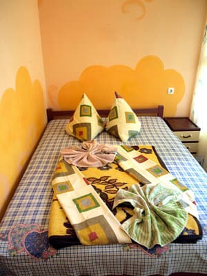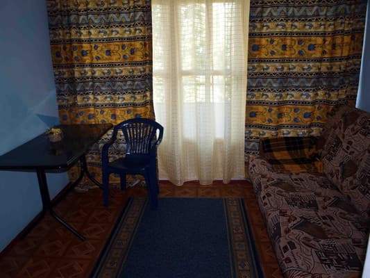 Пансионат состоит из 45 номеров категорий "Стандарт" и "Комфорт". Во всех номерах есть удобная кровать и вся необходимая мебель для комфортного пребывания в гостинице. Кроме того, категория "Комфорт" состоит из нескольких комнат, украшенных в авторском стиле. Санузел общий, имеется на этаже. Как холодна, так и горячая вода подаются круглосуточно.