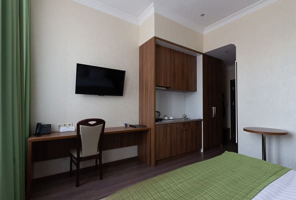 Комнаты оформлены в современных тенденциях и оснащены всем необходимым для спокойного и непринужденного отдыха. В каждой установлена ортопедическая двуспальная кровать, шкаф, минибар, плазменный телевизор, большой холодильник, система кондиционирования и кухонные принадлежности. Индивидуальная ванная комната располагает туалетно-косметическими принадлежностями, тапочками, душем и санузлом.