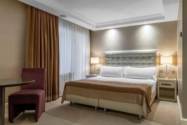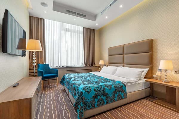 Комнаты в здании разделяются на две категории: стандарт и улучшенные, рассчитанные на 1-2 посетителей. Имеется услуга предоставления дополнительного места. Современный комплекс обеспечивает туристов качественным ресторанными блюдами традиционной и европейской кухни. Кроме того, на территории отеля имеется бассейн, бар, SPA-комплекс MAJORY, салон красоты, зал для заседаний, бесплатный Wi-Fi, спортивные и деловые центры. Осуществляется трансфер постояльцев в/из пункта приезда.