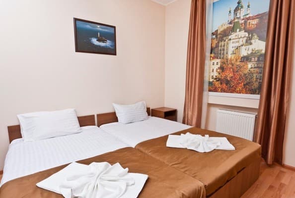 Отель "Лукьяновский" радует своим местоположением - всего в 100 метрах от метро. Он расположился на третьем этаже высотного здания и предоставляет отдыхающим 33 комфортных номеров различных категорий со всеми необходимыми для проживания удобствами. Во всех комнатах имеются удобные кровати с ортопедическими матрасами, кондиционеры, современные LCD телевизоры. Но самое главное, что в каждом номере есть бесплатный интернет и мини-кухня со всеми нужными кухонными принадлежностями, с помощью которых можно готовить полноценную еду. Из инвентаря можно так же выделить утюг и фен.