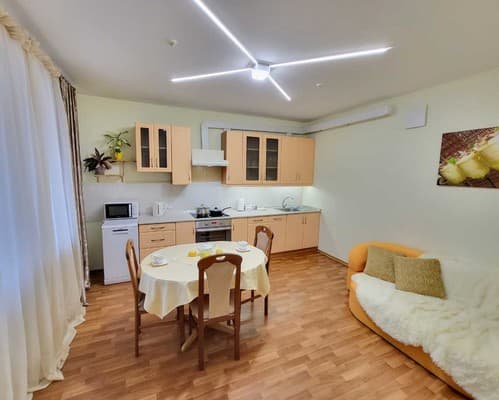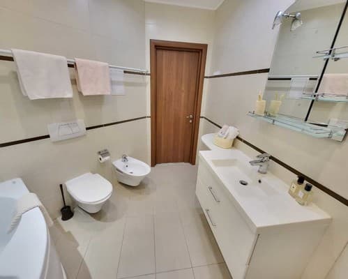 Для маленьких детей предлагаются детские кроватки, а также в наличии есть стульчики для кормления, ванночки для купания и другие детские принадлежности. Информацию о стоимости дополнительных мест и услуг уточнять при бронировании.