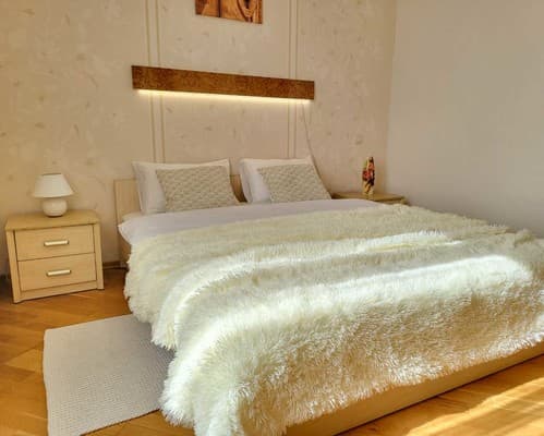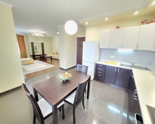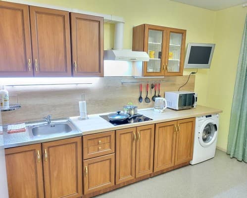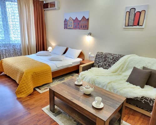 В каждой квартире предусмотрен раскладной диван, на котором можно разместить 1 взрослого человека или 2 детей. В зависимости от типа меблировки дополнительные спальные места могут располагаться в гостиной или на кухне.