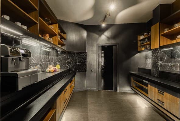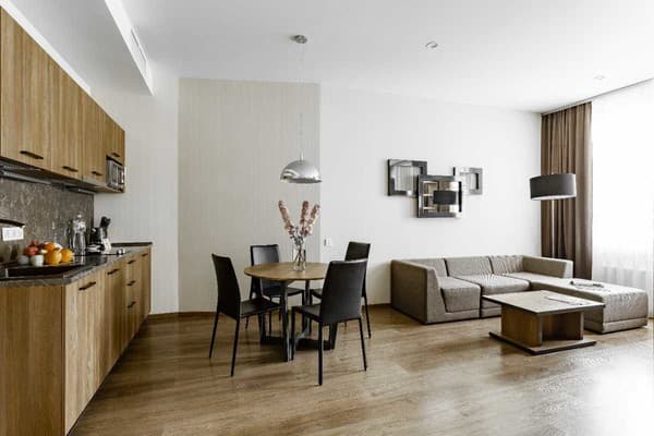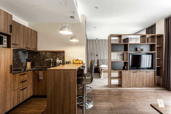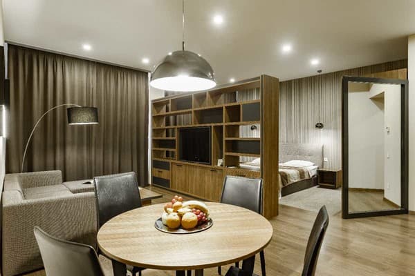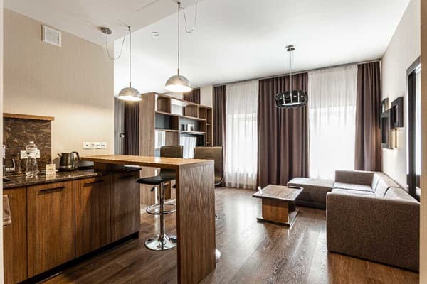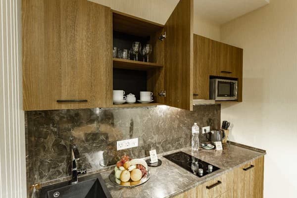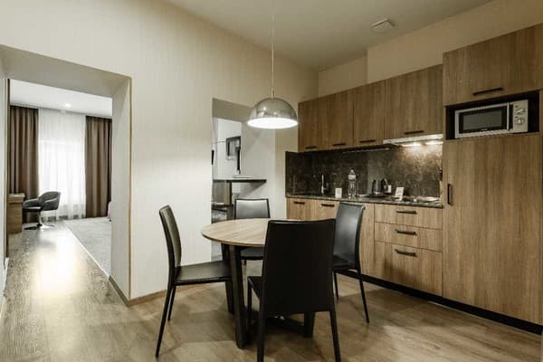 Завтрак в отеле возможно приготовить самостоятельно, так как в номерах обустроена небольшая кухня с встроенной варочной поверхностью, микроволновой печью и холодильником. Неподалеку, находится множество ресторанов и кафе, где готовят блюда украинской и европейской кухни.