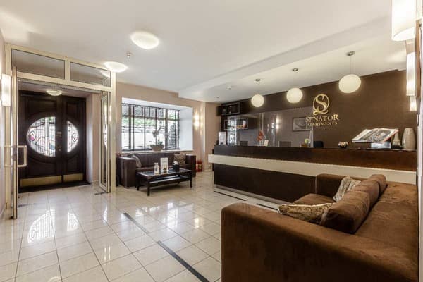 «Senator Apartments Executive Court» – это гостиничный комплекс в самом центре города Киев. Отель представлен в виде восьмиэтажного здания, спокойного теплого оттенка снаружи. Дом находится неподалеку от площади Победы, цирка, железнодорожного вокзала, различных ресторанов, ТЦ, и главных бизнес центров. Данные апартаменты являются отдельным зданием высочайшего класса, под управлением одного единственного оператора, со своей личной четкой стратегией по предоставлению услуг.