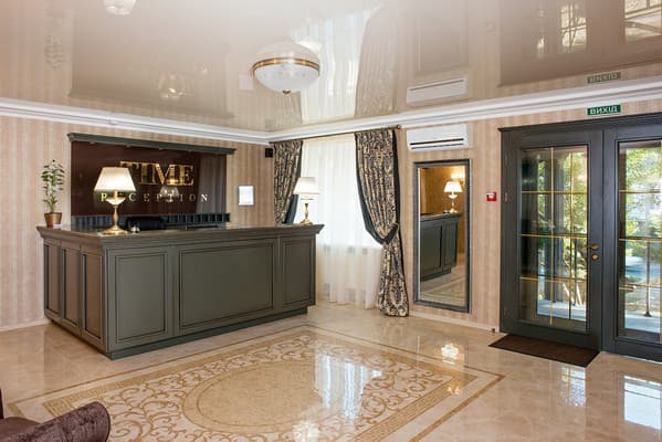 Отель "Тайм" разместился в центре Украины-городе Киев. Номерной фонд состоит из 18 а четырех категорий: "Общий", "Одноместный стандарт", "Двухместный стандарт" и "Полулюкс". Они оборудованы всем необходимым для комфортного пребывания в гостинице. Посетители смогут насладиться личной ванной комнатой или душевой, а также воспользоваться бесплатным интернетом, утюгом, гладильной доской, комплектом посуды со столовыми приборами и электрочайником. Среди платных услуг присутствует предоставление предметов для личной гигиены, дополнительное белье и стирка, а также парковочное место под видеонаблюдением. В здании также есть снек-бар, где можно быстро перекусить. Недалеко от отеля находятся два торговых центра, салон красоты, аптека и много других заведений. В номерах присутствуют кондиционеры.