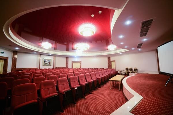 Для деловых переговоров и встреч есть актовый зал, что может разместить до 160 человек. В нем установлен кондиционер и система вентиляции воздуха. Кроме этого можно взять конференц-зал на 40 человек или вип-комнату для 14 или 8 людей.
