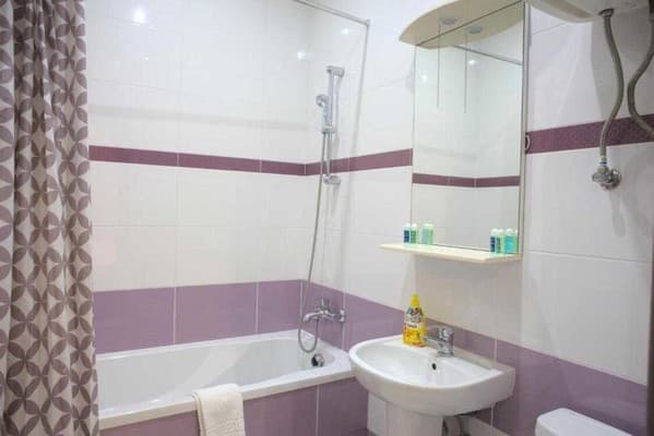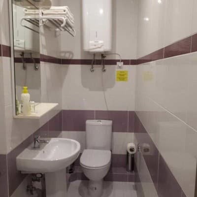 Санузел с душевой кабиной, унитазом, зеркалом и умывальником находиться в номере. Регистрация проживающих начинается с 12 часов дня. Дополнительные спальные места не предоставляться.