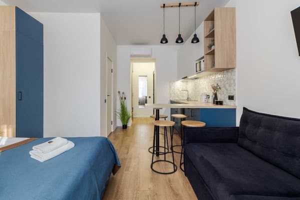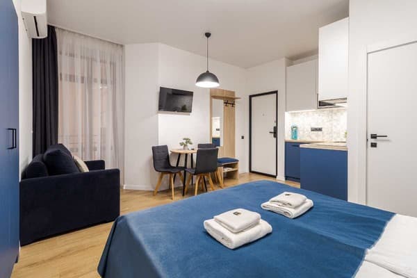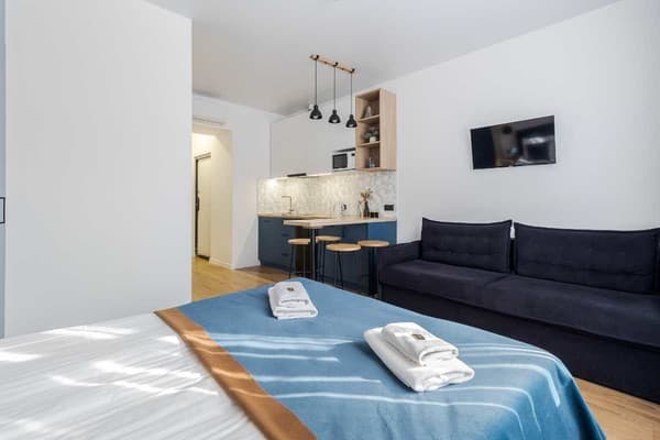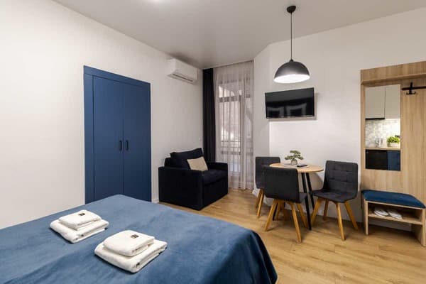 В квартирах есть раскладные диваны, дополнительные места для детей и взрослых по предварительной договоренности и за дополнительную плату. Стоимость проживания указана за 2-х, дополнительное место платное, стоимость уточняется при бронировании.