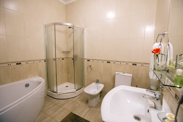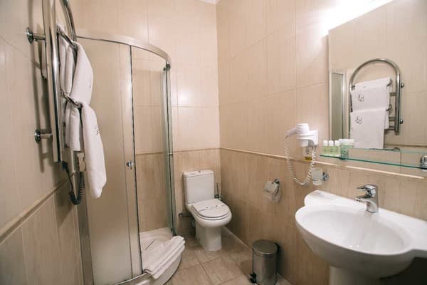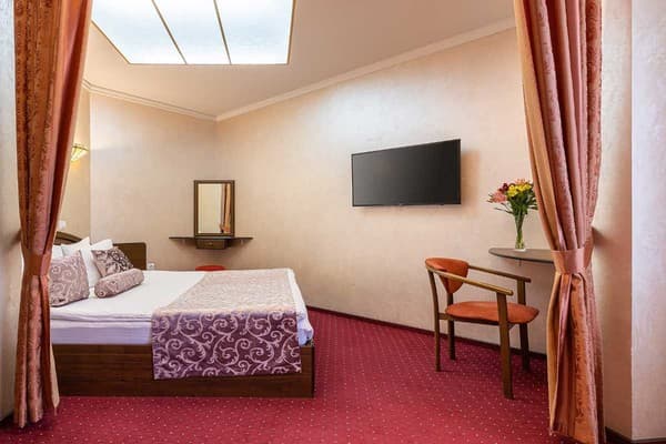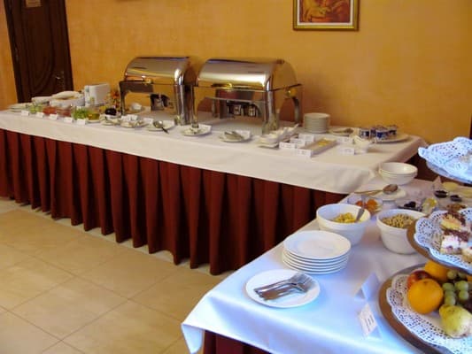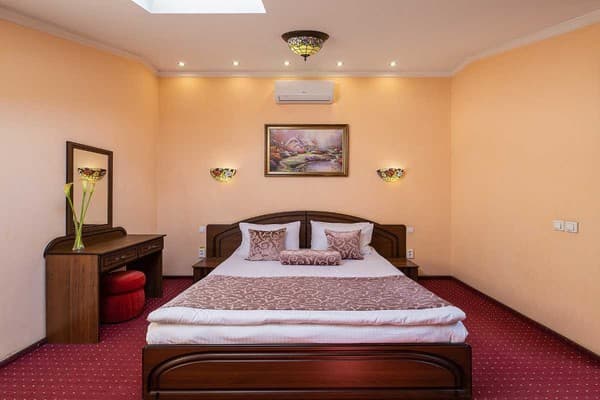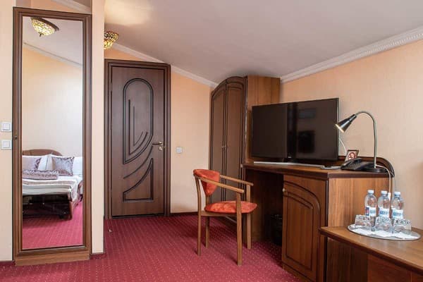 На выбор отдыхающих предлагается 20 номеров оборудованных прекрасной современной мебелью: шкафами, стульями, столиками, кроватями, тумбочками. В каждом из предлагаемых комнат есть следующие удобства: телевизор, мини-сейф, минибар, хлопковые тапочки, туалетный набор и ассортимент косметики для ванной комнаты, а также бесплатный скоростной интернет Wi-Fi. Проживание детей до 6 лет без дополнительного места – бесплатно. На первом этаже гости могут отведать блюда украинской или европейской кухни. Также без внимания не останется наличие шведского стола на завтрак. На территории присутствуют бесплатные места для парковки автомобилей.