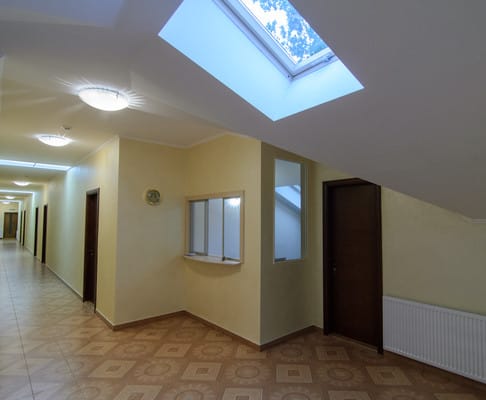 В наличии тринадцать комфортабельных номеров различной вместительности. Все они сделаны в выдержанном минималистическом стиле, преимущественно в светлых оттенках. В каждом имеется личный гардероб, кровать, тумбочки, светильники, и ванная комната, которая включает душевую кабинку, туалет, зеркало и раковину для умывания. Подходит для размещения как туристических групп, так и отдельных туристов. По всему дому раздается бесплатный доступ к беспроводной сети интернет. На этаже находится небольшое кафе в свежем зеленом цвете, здесь можно отведать блюда украинской или других европейских стран, либо же возможна функция блюда на заказ. Известные туристические памятки находятся близко от отеля, например церковь Святого Юра расположена всего за десять минут ходьбы пешком от апартаментов. Предусмотрена парковка личного транспорта гостей.