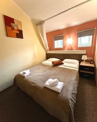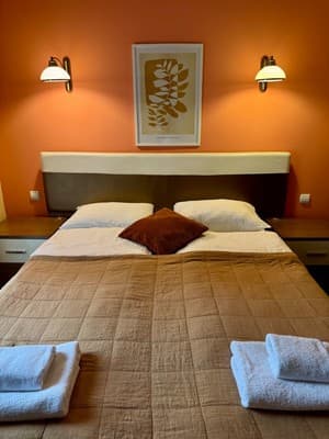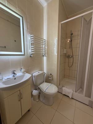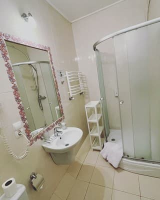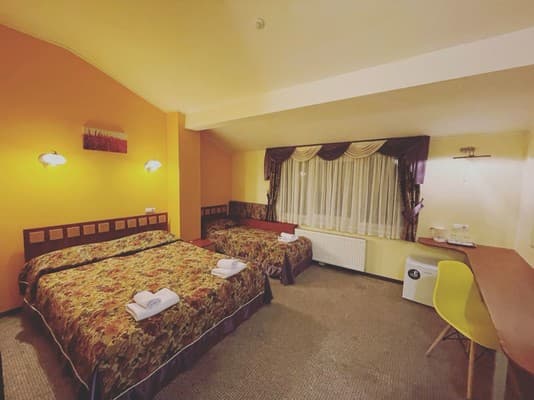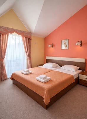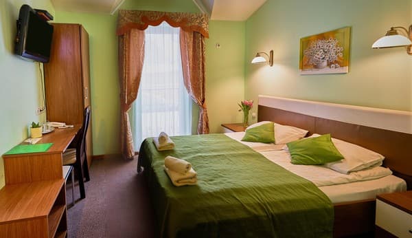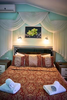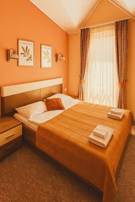 В наличии отеля находится 20 номеров в современном дизайне и отдельный двухкомнатный номер категории «VIP». Каждая комната в доме оборудована телевизором со спутниковым телевидением, регулируемым кондиционером, кроватью, журнальным столиком, креслами возле него и санузлом, представленным душевой кабинкой, туалетом, зеркалом и раковиной для умывания. Для гостей, прибывших на собственном транспорте, предусмотрен паркинг.