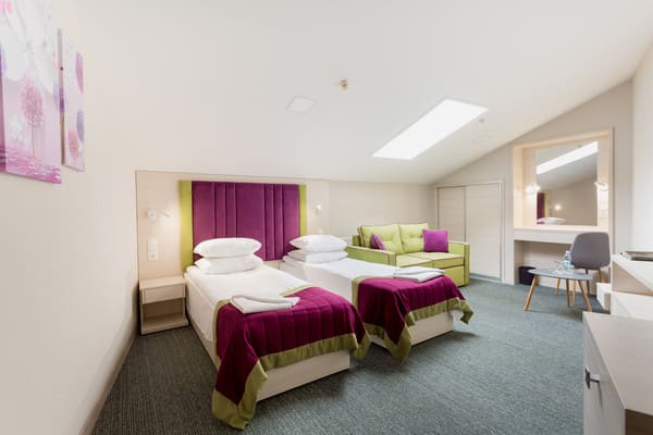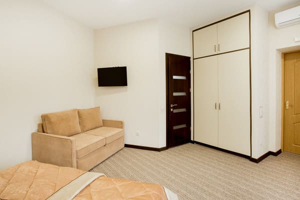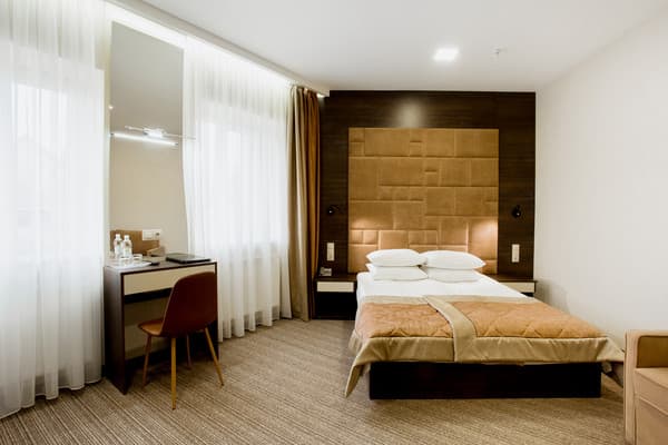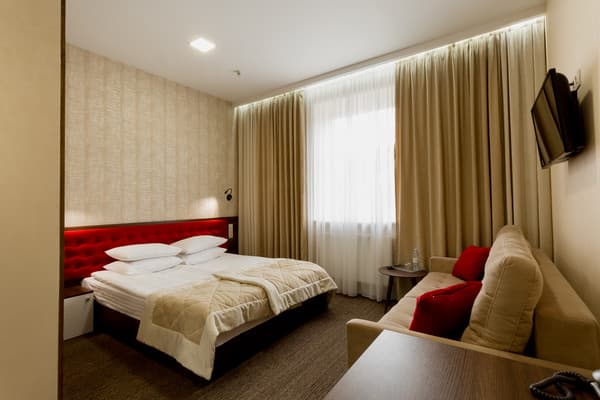Для гостей города предлагаются одно и двухместные номера стандартного типа, а также категории «Люкс» и «Полулюкс». В каждых апартаментах предоставлены все необходимые вещи для комфортного пребывания в отеле: современная мягкая мебель, вместительные шкафы и тумбочки, диваны и столики в гостином уголке. Есть возможность пользования кондиционером, холодильником, телефоном и просмотром кабельного телевидения. Можно хранить вещи в предоставленном сейфе.