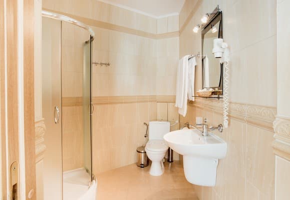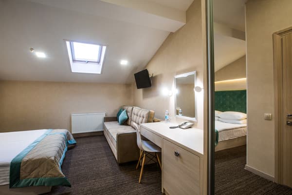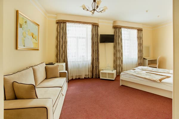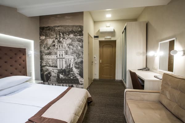 Ванные комнаты, помимо современной сантехники, оборудованы феном и укомплектованы косметично-туалетными принадлежностями, предоставляются тапочки. В стоимость номера включена подача завтрака. В ресторане гостиницы подаются блюда из меню украинской и европейской кухни. Для большего удобства стойка регистрации работает круглосуточно. Бесплатным интернет-соединением можно пользоваться по всему отелю. Из дополнительных услуг предлагается вызов такси и пользование прачечной. Имеется автомобильная парковка.