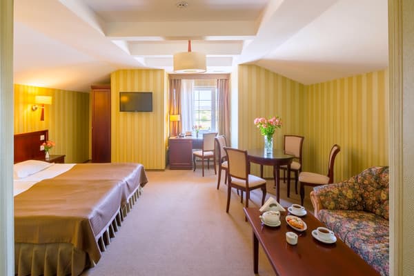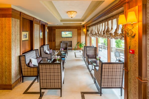 Для проведения переговоров, деловых встреч и других подобных мероприятий предоставляется конференц-зал, свои услуги оказывает опытный переводчик. Приятно отдохнуть можно на оборудованной террасе, рядом находятся ухоженные цветочные клумбы и небольшой пруд. Времяпровождения детей скрасит игровая площадка. Автомобили можно оставить на предоставленных парковочных местах под охраной.