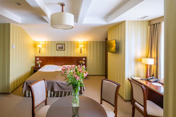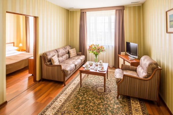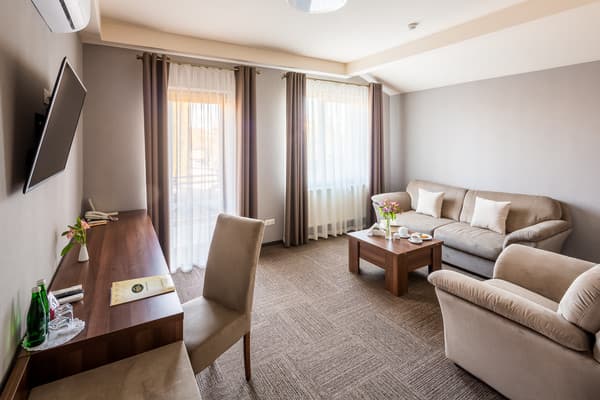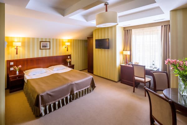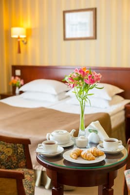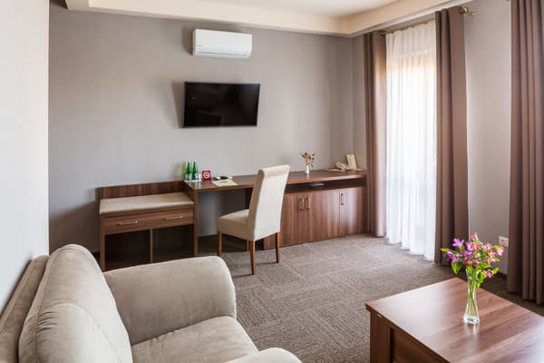 Из дополнительного сервиса администрация отеля предлагает стирку и глажку одежды, доставку еды в номер, трансфер и терминал для оплаты картой. В пяти минутах езды от комплекса работает торговый центр “King Cross Leopolis”.