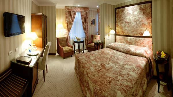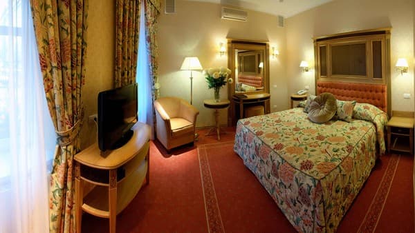 Очень удобными являются услуги доставки вещей в комнату, автостоянка, прачечная, зал для детей, римская парная и салон красоты. На первом этаже можно увидеть ресторан, который специализируется на приготовлении итальянской кухни «Валентино». В гостинице номера вирируются от уровня «Стандарт» до «Люкс».