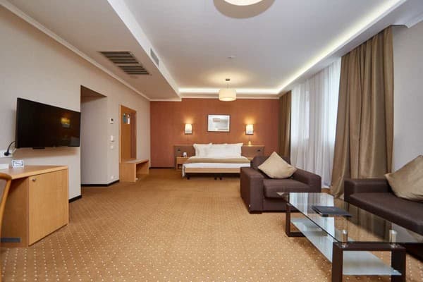 Дети до семи лет проживают бесплатно. Дополнительное спальное место предоставляется за доплату. Размещение с животными запрещается. Заселиться в апартаменты можно с двух часов дня, а покинуть их выйдет только до полудня. Железнодорожный вокзал расположен на расстоянии 1,7 км от гостиницы. Недалеко от отеля находятся торговые центры и заведения быстрого питания.