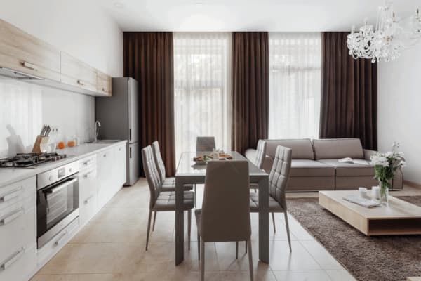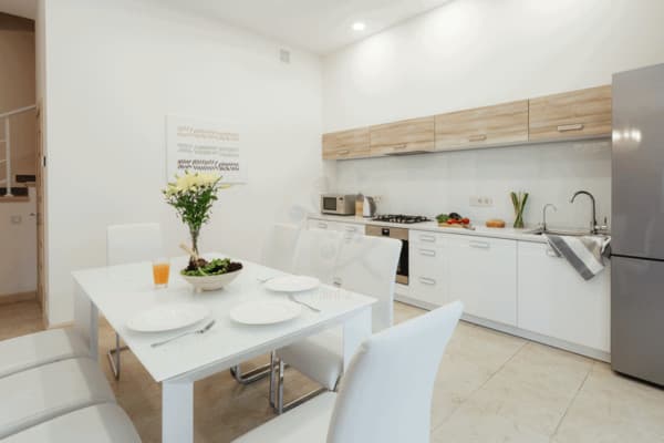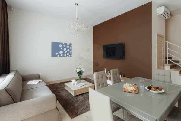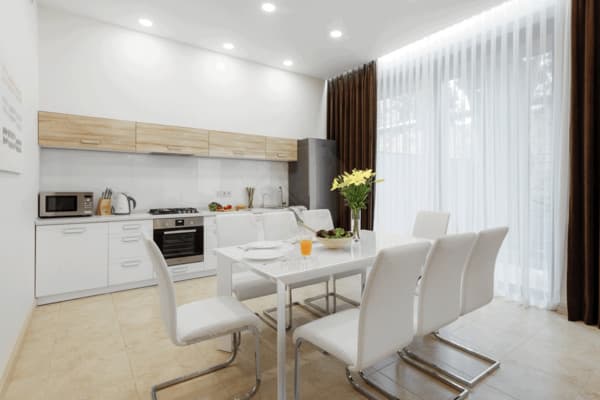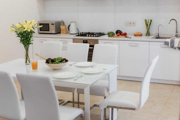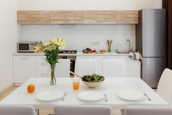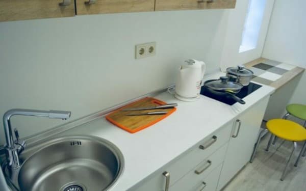 Помимо собственной кухни, можно заказать доставку еды из ближайшего ресторана. Всего в паре десятков метров от места проживания находятся кафе, бары и пиццерии.