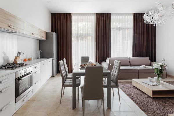 "Arcadia Villa Apartments" — это комплекс апартаментов, который находится в городе Одесса, всего в двух километрах от Аркадии. Гости могут отдохнуть в уютных трехэтажных коттеджах категории «Стандарт» или «Премиум». В каждом домике несколько спальных комнат, гостиная, просторная кухня и три полностью укомплектованных санузла. От других видов жилья коттеджи отличает большая терраса с деревянной мебелью.