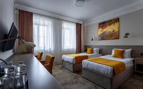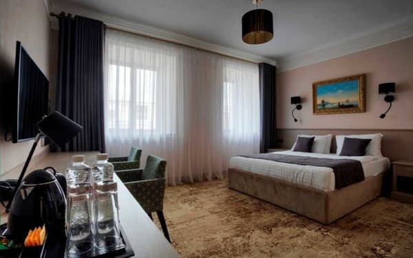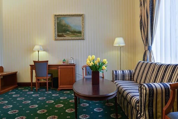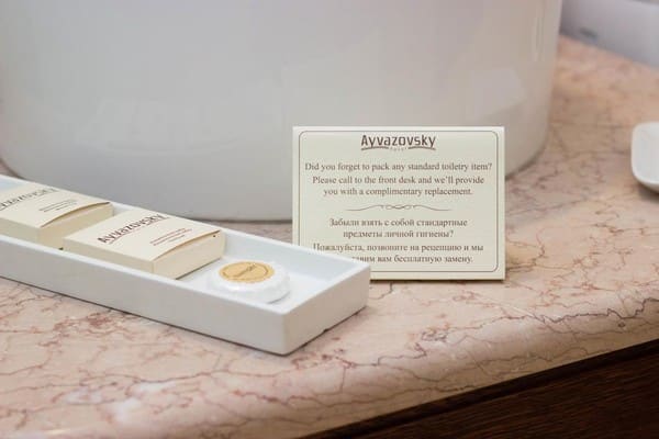 Бизнес-отель «Айвазовский» находится в центре города, рядом с Одесской Филармонией и Оперным театром. Для заселения гостям предлагается двадцать сеть удобным апартаментов категории «Стандарт», «Полулюкс», «Люкс» и номера мансардного типа. Все комнаты выдержаны в классическом стиле, как и отель в целом. В номерах установлены телефоны с международной связью, телевизоры со спутниковыми каналами, минибары и сейфы. Система климат-контроля обеспечивает комфортную температуру воздуха. Ванные оборудованы душем и феном, выдаются тапочки, а в «Люксе» и «Полулюксе» еще и халаты.