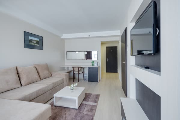 Стоимость дополнительного места уточняется при бронировании. Услуга предоставляется только в номерах категории "Люкс" и "Студия". Стоимость дополнительного места для детей от 4х лет уточнять во время бронирования.