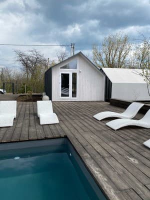 В каждый номер можно предоставить дополнительное спальное место для детей. Также есть домики с двухярусными детскими кроватями.