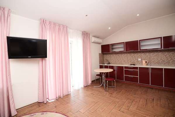 В улучшенных номерах установлен гостиный уголок, зона столовой, а в ванной комнате - стиральная машина.