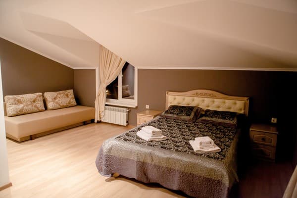 Отведать оригинальные блюда национальной и восточной кухни можно в ресторане комплекса. Для оздоровления здесь оборудован спа-центр, русская баня с бассейном, можно попробовать купание в “закарпатских”чанах. Для детей есть детская игровая зона. На территории можно отдыхать в каминном зале, на открытой террасе с зоной отдыха, в беседках, готовить на мангале.