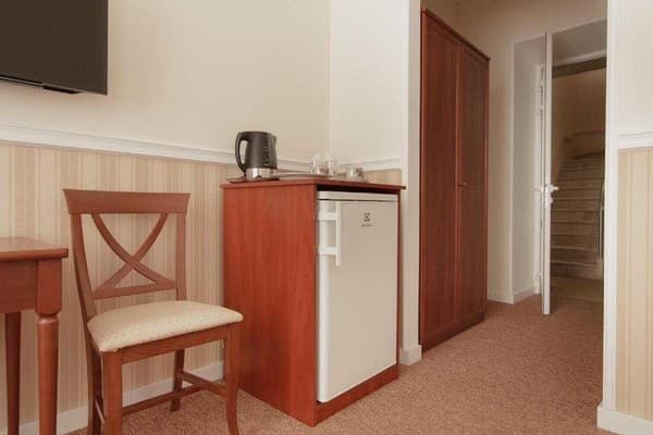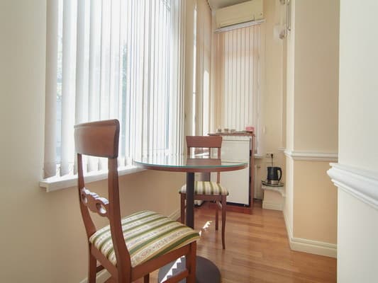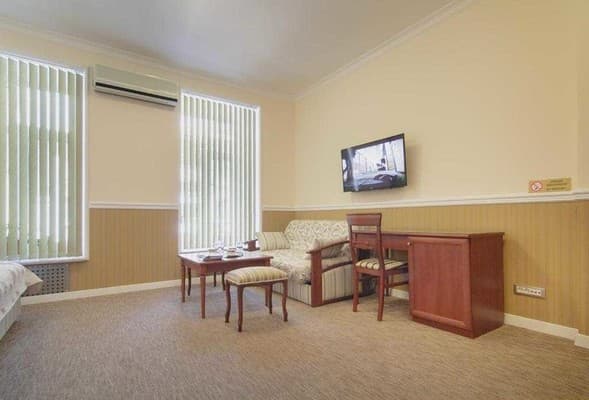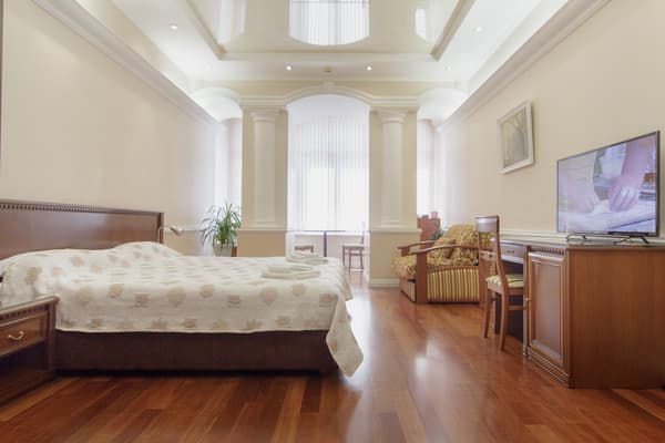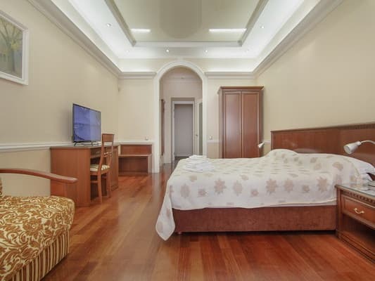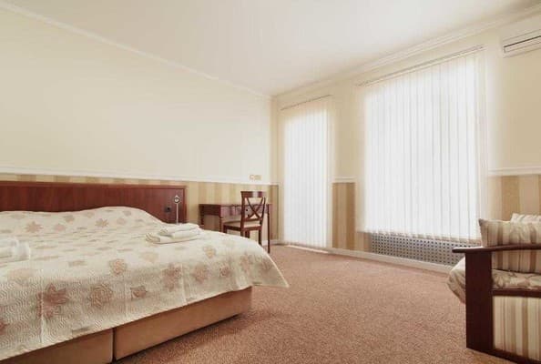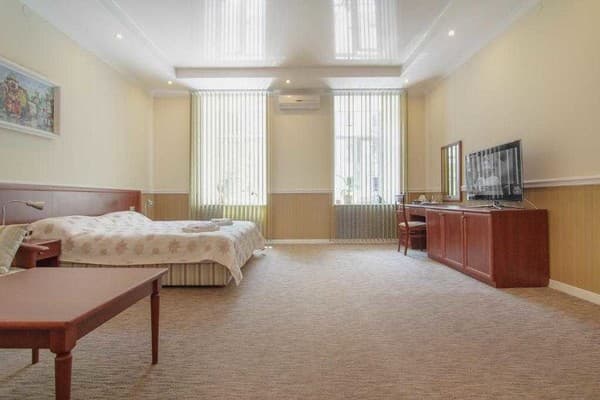 Номера высшей категории дополнены гостиным и рабочим уголком, набором для чаепития с кофе и чаем, а в ванной комнате - ванной.