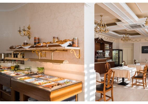 Питаться можно в ресторане при отеле. На выбор предоставляется банкетный зал, летняя площадка, открытая терраса и бар. Здесь готовят блюда европейской кухни, а также из морепродуктов.