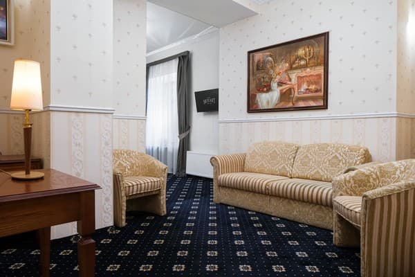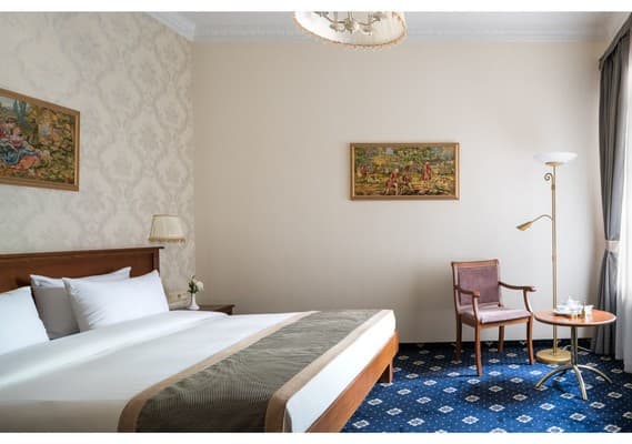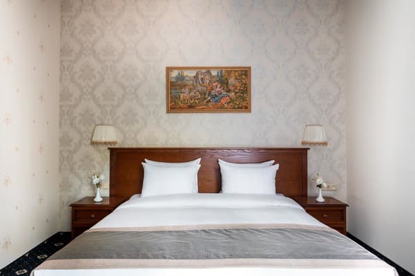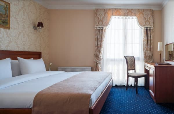 В отеле 40 номеров различного класса «Классик», «Стандарт», «Полулюкс», «Люкс». В комнатах установлена необходимая мебель из бука австрийского производства, есть возможность международной связи, стоит телевизор с трансляцией 75 каналов, холодильник, минибар. Для регуляции температуры установлена система климат-контроля. Для деловых личностей находкой станет письменный стол и возможность подключить компьютер к сети интернет. Гостям предоставляются халаты, тапочки разового использования и фен.
