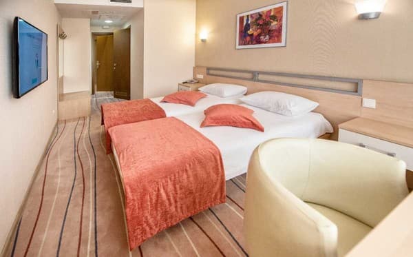Размещение детей без предоставления дополнительных мест — бесплатно. За размещение детей в полу люксах и люксах на дополнительных диванах, оплата взимается за дополнительный комплект белья.