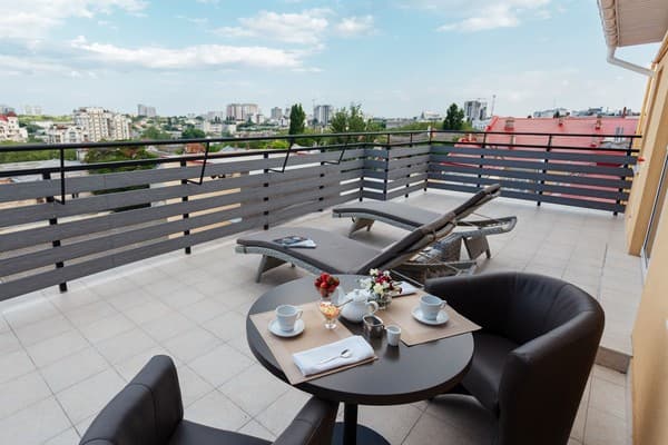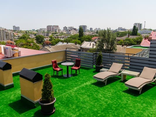 Недалеко от Греческой площади в Одессе, находится отель "UNO Design Hotel". Гостиница с итальянским дизайном состоит из 49 двухместных номеров от классических до “пентхауса”. Все номера, выполнены в классическом стиле с добавлением ярких деталей. Номера обеспечены стандартным набором удобств, как система кондиционирования, телефон, спутниковые каналы и свободный Wi-Fi. Кроме этого в номере есть холодильник, сейф, мини-бар. В ванных комнатах предоставляется полный набор банных и туалетно-косметических принадлежностей.