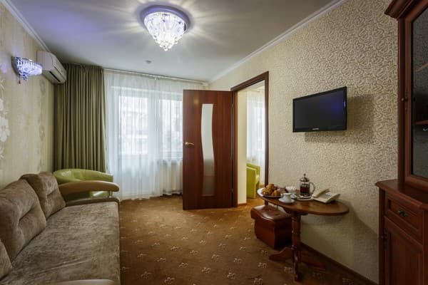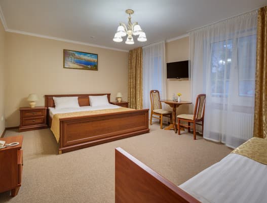 На каждого дополнительного гостя начисляется доплата, дети в возрасте до 6 лет в комнате с родителями размещаются бесплатно; дети в возрасте от 6 до 12 лет размещаются с дополнительной оплатой.