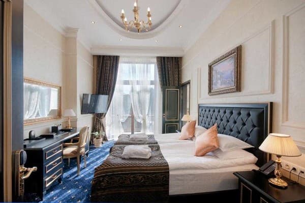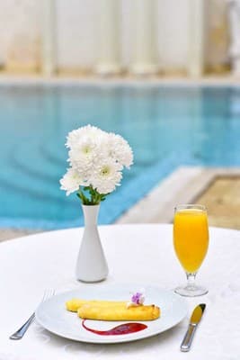 Гости могут отдыхать у открытого бассейна и в лаунж-зоне, посетить шикарный ресторан с открытыми террасами и отведать оригинальные блюда от шефа. Рядом с отелем можно попасть в спа-центр и фитнес-центр, где удобно заняться спортом и пройти разные процедуры массажа, косметологические процедуры, поплавать в разных бассейнах.