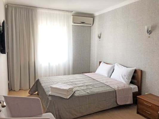 Всего в нескольких метрах от берега моря расположилась небольшой отель «Взморье». В ней одиннадцать светлых и уютных номеров, в которых есть хорошая система кондиционирования, телевизор, небольшой холодильник и высокоскоростной интернет. В туалете установлена душевая кабина, имеется набор полотенец и средства личной гигиены.
