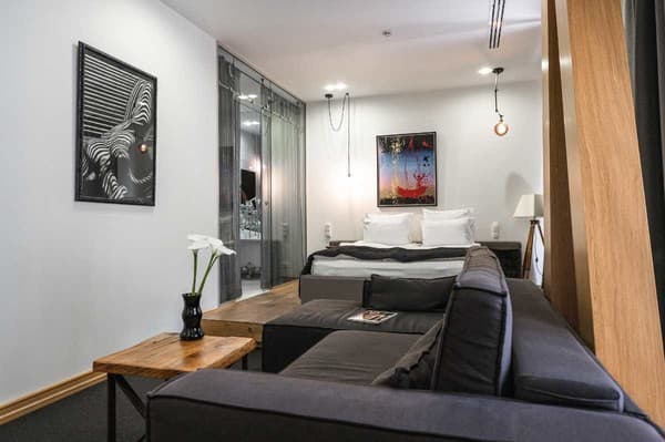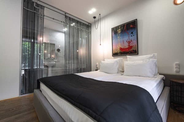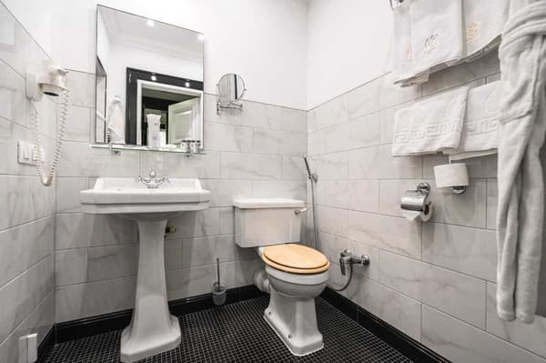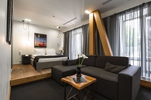 Гостиница насчитывает 26 двухместных номеров от стандарта до “люкса”, выполненных в элегантном стиле.
