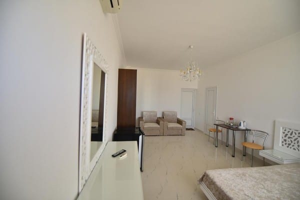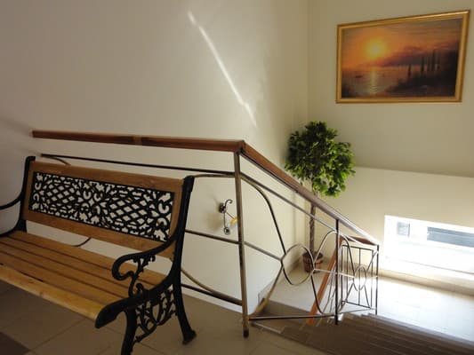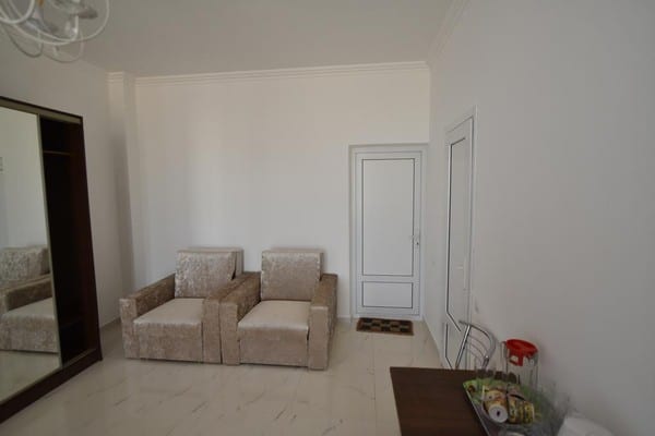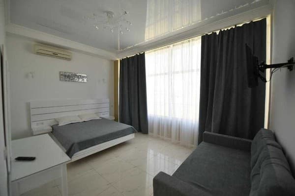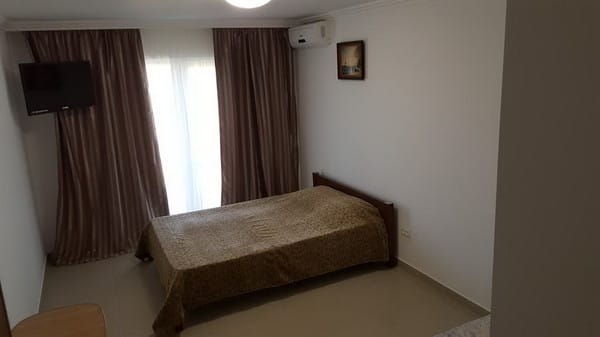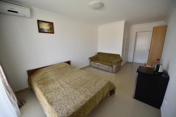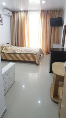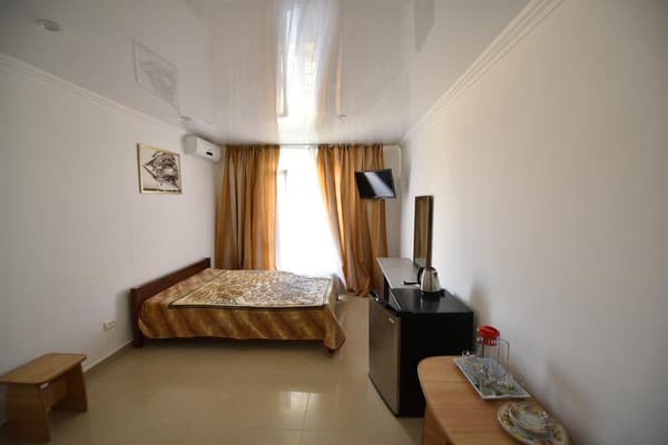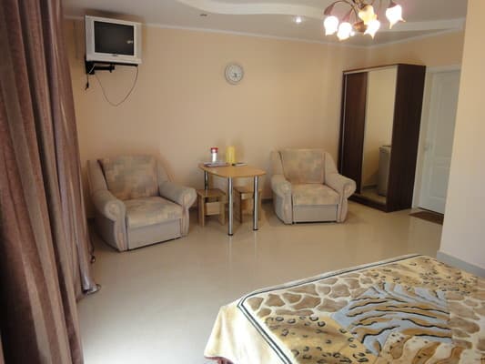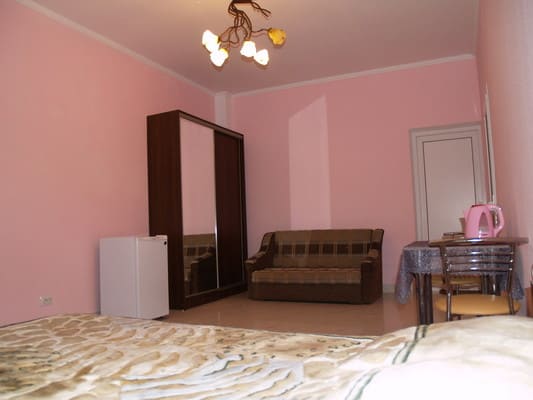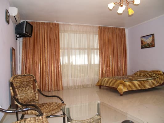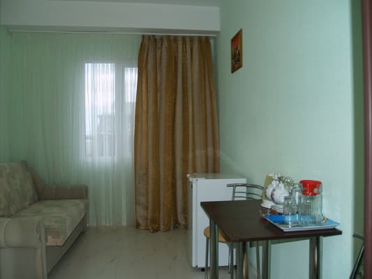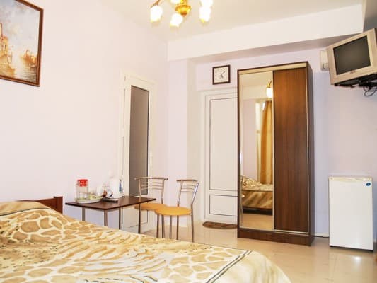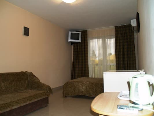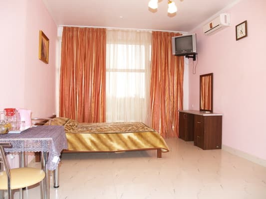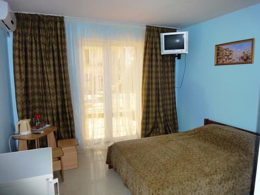 Для отдыхающих предоставляются светлые и комфортные двухкомнатные и однокомнатные номера в разных корпусах гостиницы. Все они оснащены ванными комнатами, цифровым телевидением, кондиционерами и холодильниками. Предусмотрен бесплатный интернет доступ. Абсолютно все номера оборудованы балконами, а некоторые имеют панорамное застекление, откуда открывается прекрасный вид на море. Для приема пищи на втором этаже здания находится просторная, удобная, кондиционированная столовая. Также постояльцам предоставляется полностью оборудованная кухня для самостоятельного приготовления пищи. Совсем неподалеку от отеля расположен минимаркет «Черноморский», где отдыхающие могут закупить гости все самое необходимое. На территории гостиницы размещены столики для отдыха, крытая и открытая автомобильная стоянка. Буквально в двух шагах есть небольшой рынок, пляжные кафе, бары и дискотеки. На пляже доступны различные водные аттракционы.