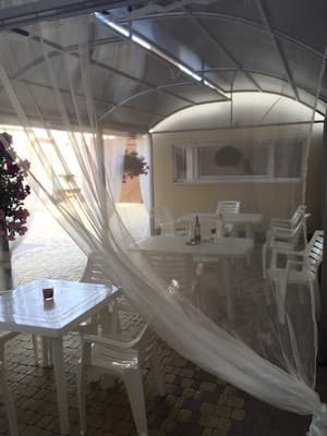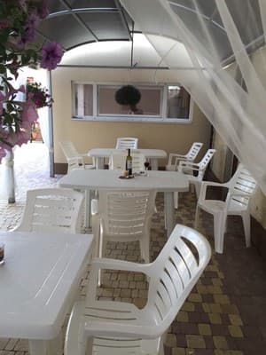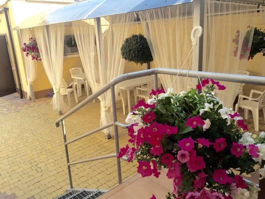 На улице есть территория для отдыха гостей. Здесь расположена летняя терраса и общая печь-мангал, где можно разжечь огонь и пожарить шашлык. Но если туристы желают приготовить домашнюю еду, то они могут воспользоваться общей кухней, где есть вся нужная посуда и оборудование для этого. Есть платная стоянка для авто, которая круглосуточно охраняется.