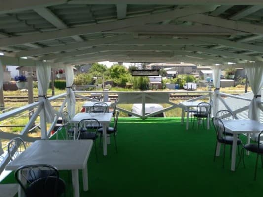 Апартаменты представлены двухэтажным домом с длинным балконом и террасой. Во дворе растут деревья и стоят столики, на которых можно есть, вынося порцию континентального завтрака с собой или же употребить еду не выходя из апартаментов. На террасе стоят несколько кресел, где чаще всего проводят вечера отдыхающие.