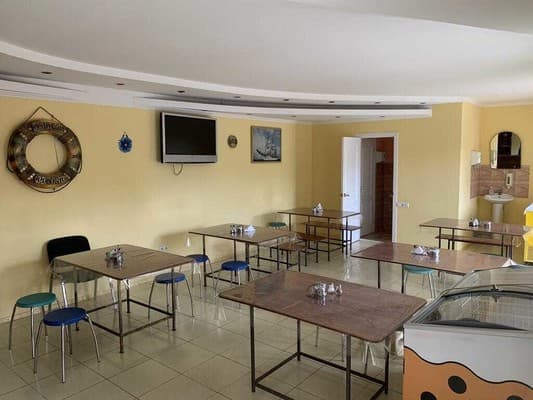 Отдыхающие могут заказать комплексное питание в столовой отеля. Также во дворе отеля есть площадка для барбекю и бар.