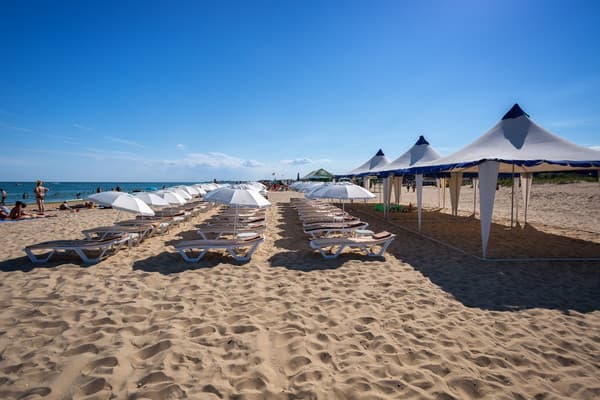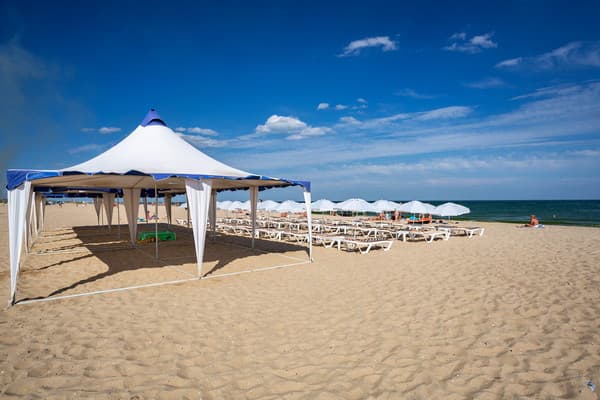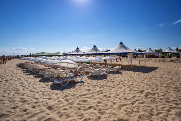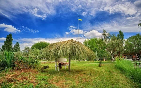 На расстоянии 150 метров от песчаного пляжа в Затоке расположился парк-отель «Робинзон». Он представляет собой одноэтажные каменные коттеджи с отдельным входом в каждый номер.