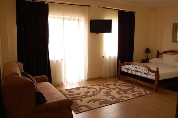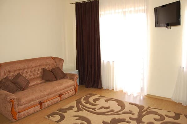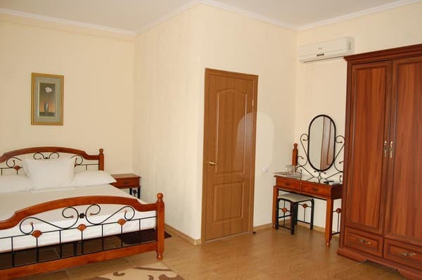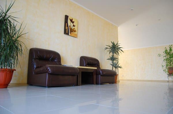 Гостиница новой постройки, поэтому везде сделан качественный ремонт. Сами комнаты обставлены современной мебелью. Из технических приспособлений есть холодильник, кондиционер, телевизор, к которому подключено кабельное телевидение, бесплатный интернет. В каждом номере свой санузел, ванная комната с душевой кабиной. По требованию отдыхающих предоставляется фен, утюг, гладильная доска.