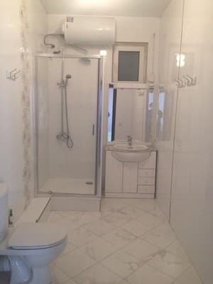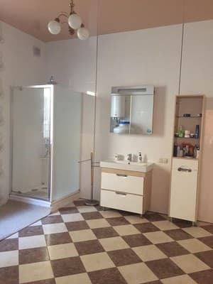 Есть ванная комната, где предоставлены туалетные принадлежности, фен. Кроме этого пользоваться можно стиральной машинкой и доской для глажки белья.