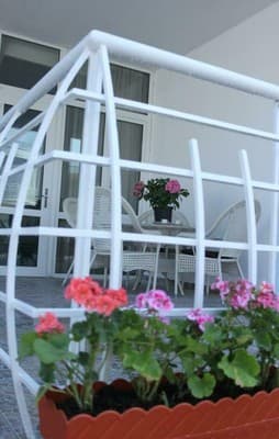 Вход во все номера отдельный. В комнатах имеется все, что нужно для проведения комфортного отпуска. Большие кровати, шкафы c вешалками для хранения одежды и современная бытовая техника: холодильник и телевизор со спутниковым ТВ присутствуют во всех апартаментах. Прохладу в номерах обеспечит кондиционер. Кухонная зона оборудована плитой, чайником и нужной посудой, также имеется уголок для приема гостей, с дополнительной мебелью. Можно посидеть на просторной террасе за чашкой чая, любуясь панорамным морским пейзажем. Ванные комнаты с душем и туалетом имеют все туалетные принадлежности. Для детей предлагается бесплатное проживание. По всей территории работает интернет.