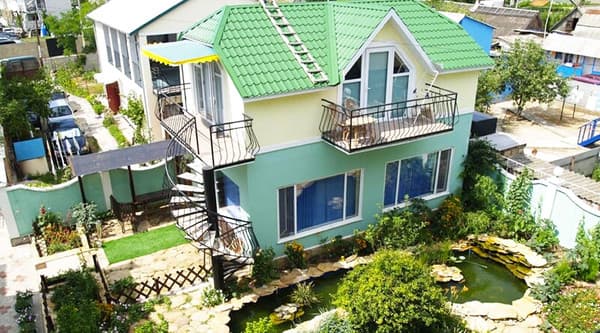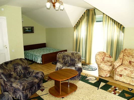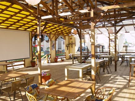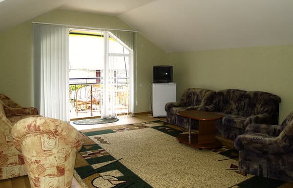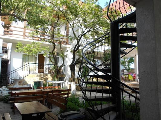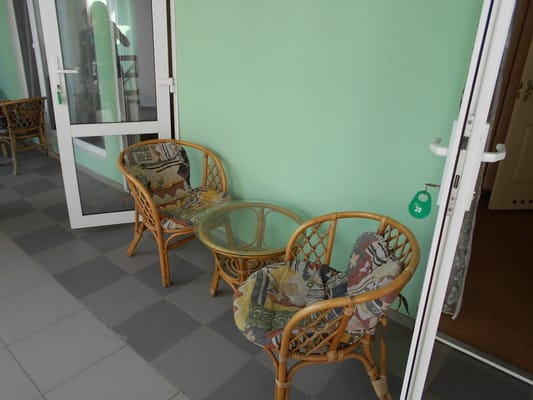 Дети до 4х лет имеют право на бесплатное проживание, а для старших можно арендовать посуточно кроватку. Также гости могут отдохнуть на общей веранде, где есть столики на несколько персон и мангал, для приготовления шашлыка, барбекю, овощей гриль.