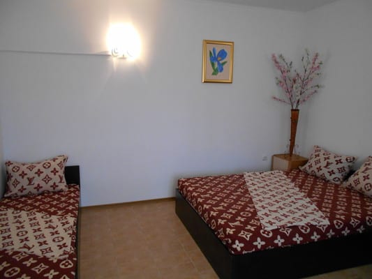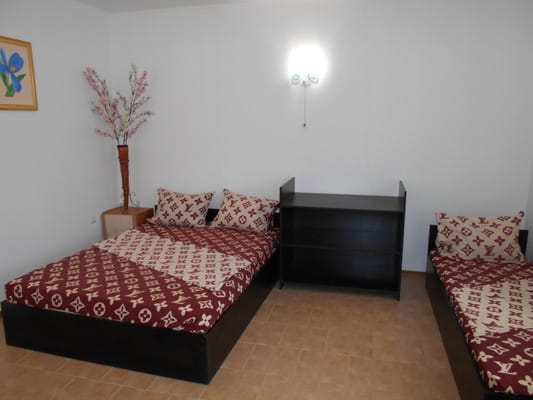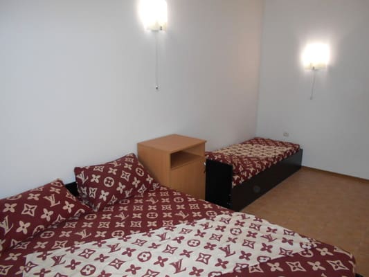 Представляет из себя небольшое трехэтажное здание. К расположению отдыхающих предлагают последний – третий этаж. В нем есть номер класса «Стандарт» на двоих с большой двуспальной кроватью. Установлен кондиционер. Предоставляются вешалки для одежды. Возможна доставка дополнительного спального места за отдельную плату. Душ, туалет и умывальник в ванной комнате, расположенной в номере.